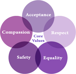 • We honor each other’s culture, race, life experience, belief system, ability, class, age, sexual orientation, and gender identity.